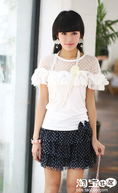 搭配解析:美丽出水芙蓉棉T ,拼合弹力花边,让你的香肩完美展现,
