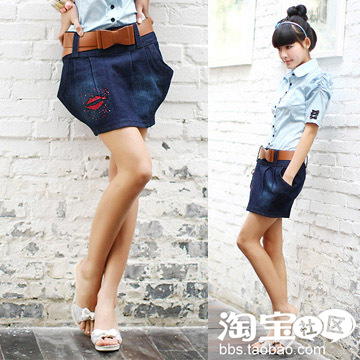 个性可爱红唇牛仔短裙,胯裙,包裙,很适合臀部稍丰满的mm哦 o(∩_∩)o...
