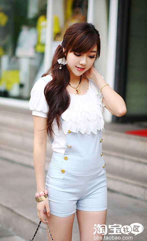 支持妹妹~荷叶泡泡袖纯白T+淡蓝小背带短裤~~这个很喜欢~在那买的~~链接发一下被~嘻嘻