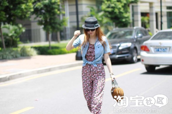 1.日系 碎花连身裤+草编+牛仔 今夏的不败主题