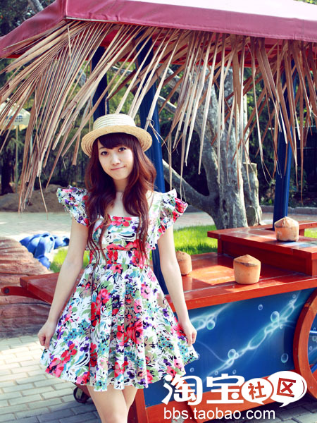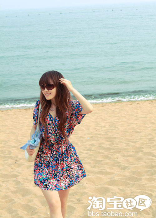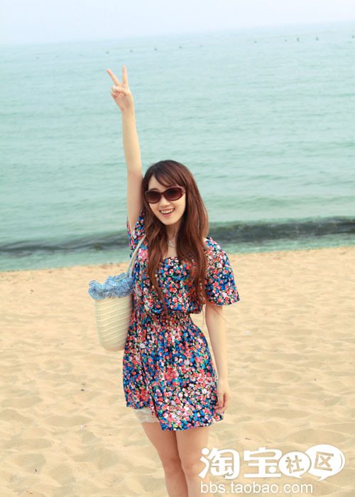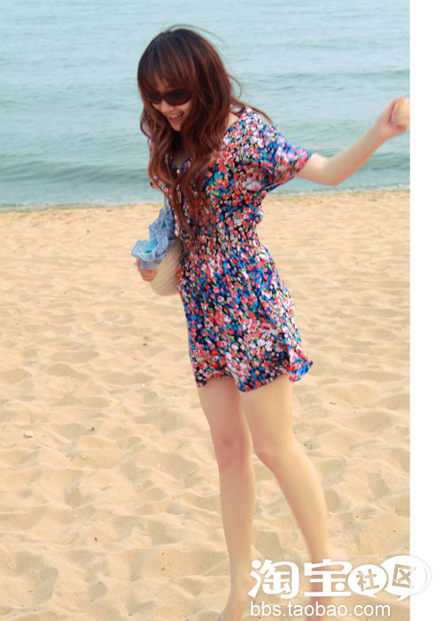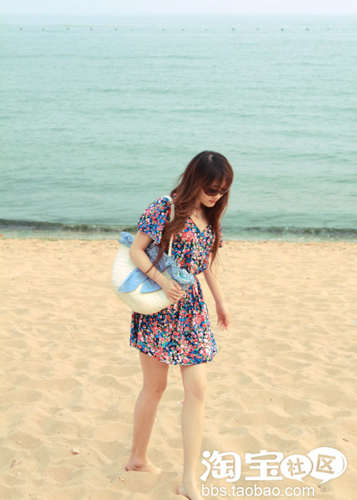 ①色彩绚丽的油画般的图案。给这个夏日带来了阳光般的感觉。收腰的设计更加凸显身材哦。再搭配上墨镜跟草编包。你一定是海边瞩目的焦点哟!~