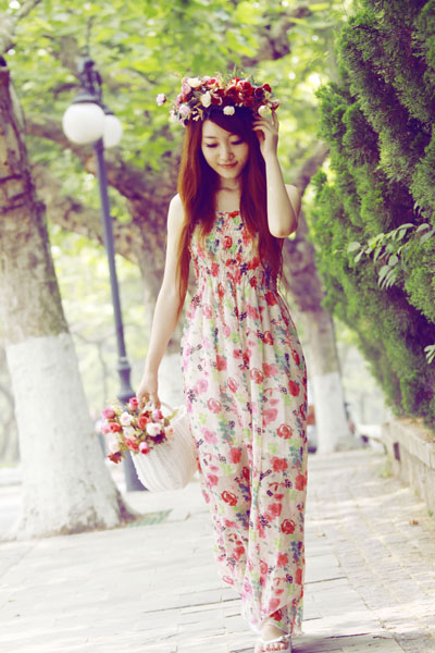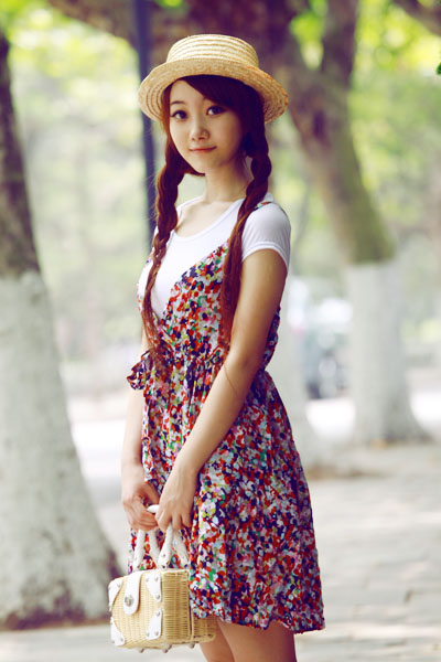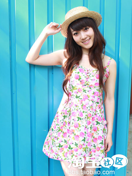 还给整体气质都得到了大大的提升。搭配上碎花吊带裙显得更加乖巧可爱。这样的装扮。灰常灰常适合约会哟!~既可爱又淑女。