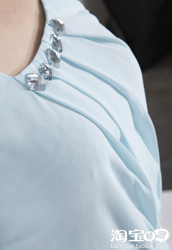 这是我最喜欢的啦,雪纺的面料,镶钻的小珠,腰上还有系带呢。