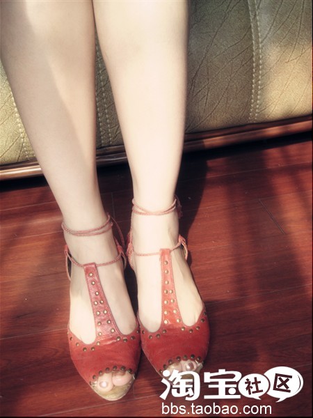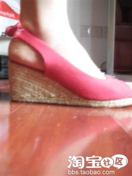 大红色坡跟,淘宝买的,几十块吧,一次都没穿过