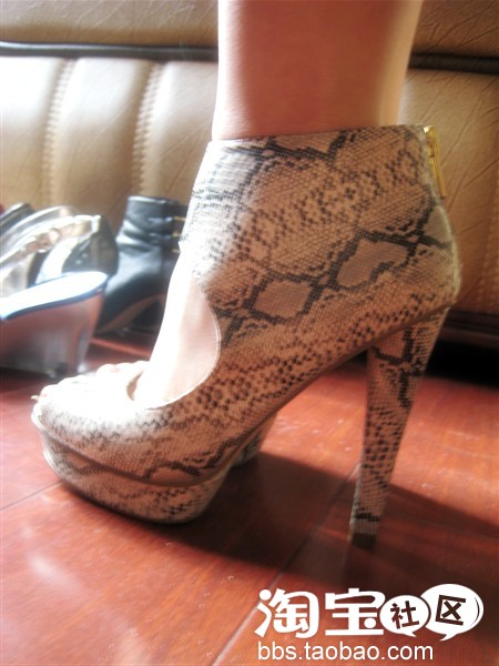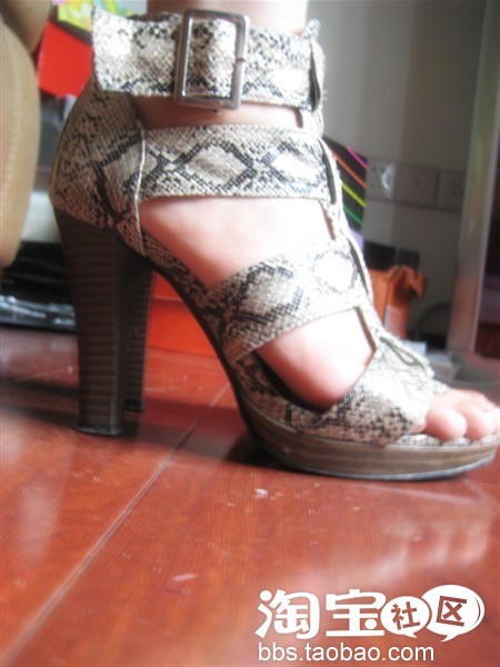 蛇皮罗马鞋,很好穿,大家有没发现我的脚趾头比较长,其实这样脚趾长的MM穿露趾的高跟鞋会比较舒服