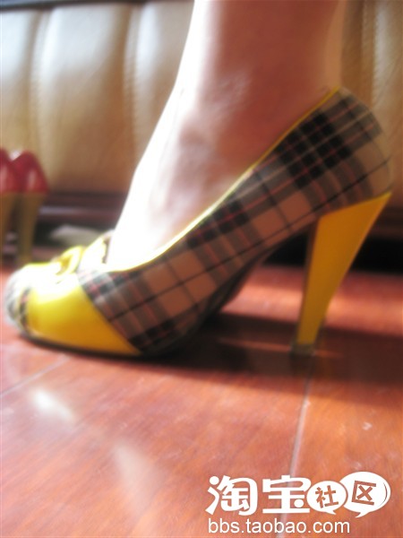 黄色格子单鞋,小店买的,秋天的时候穿,很抢眼