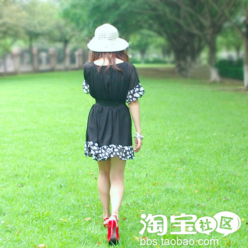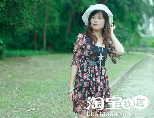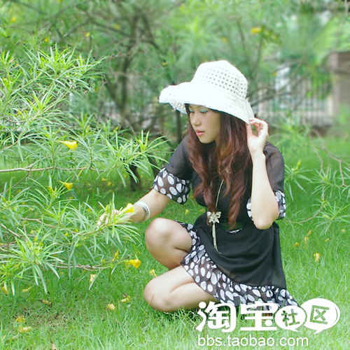 精致的草编帽 配上韩版雪纺连衣裙 十足公主味。