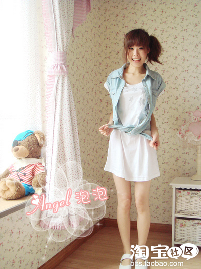 越简单的衣服 就越好搭配哦~~下面这个泡加了条KK 是不是感觉不一样啦