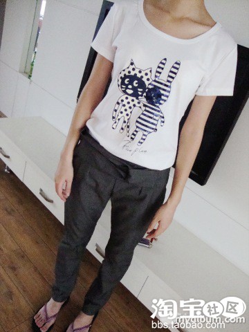 1.很简单随意的条文T,但是蕾丝领口的设计让这件YY变的很特别噢,~