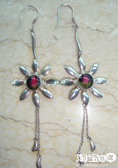 那对被我取下耳勾的耳环怎么办呢?也没关系,我把它们做成更适合我的吊坠!取下耳环上的长杆子,通过背面的小洞穿进去银链子可不就是一条精美的项链吗?于是,就变成了这样。。。