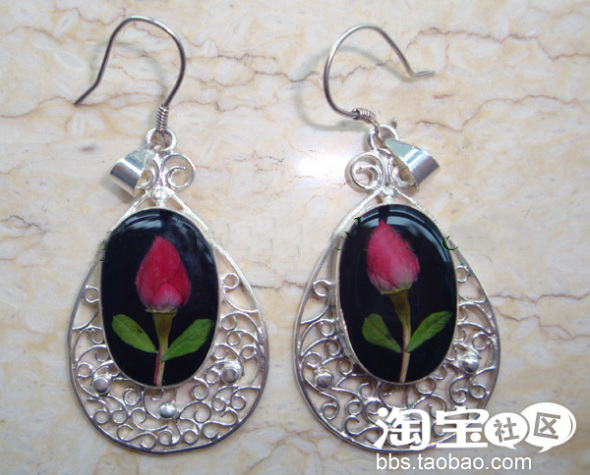 于是,玫瑰吊坠就成了一对玫瑰耳环,很有风情哦~