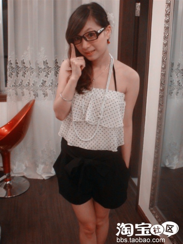甜美风的MM最喜欢的,圆点 黑白的设计,腰这里还有蝴蝶结