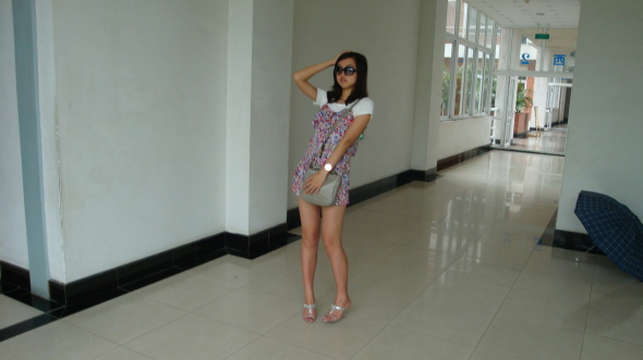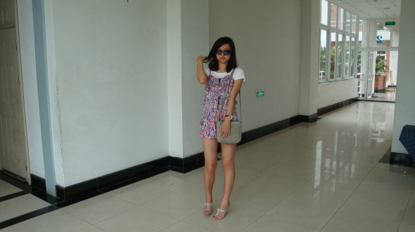 花花的连体裤是允儿今夏的大爱啊...粉色系的碎花感觉又春天又夏天的...胸前褶皱的设计有弥补了些允儿天生的小缺陷哈....和白T来搭简直绝配啊....白T稍微把连体裤的花花中和了下...比单穿要舒服很多哦....
