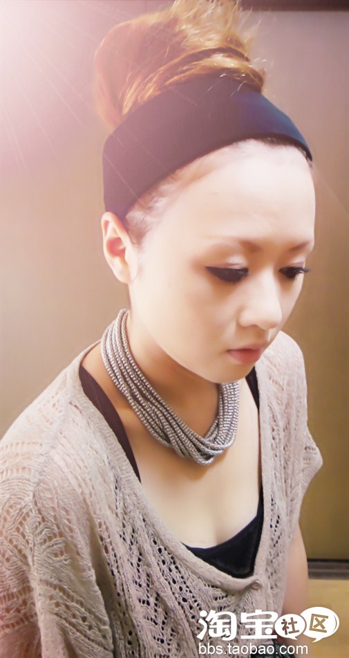 简单的黑色发带,永远不败的时尚,吊带衫+超短款针织衫+侧口袋肥腿裤+多功能的丝巾显得更为闪亮