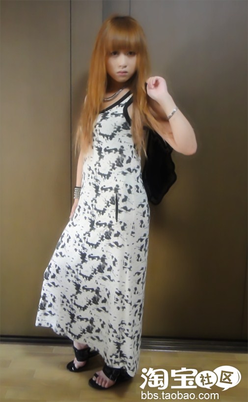 渲染风长款连衣裙+宽松式蝙蝠衫