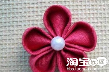第五:固定好以后整理一下,在花瓣的中间风一颗珍珠,现在看是不是漂亮多了~!