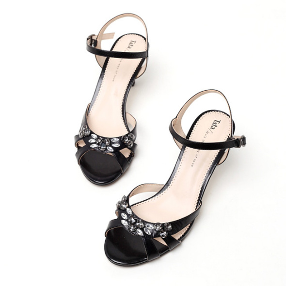 黑色羊皮鞋面,镂空设计加上水钻装饰,稍稍透着成熟的气质,秀出迷人的脚背~~