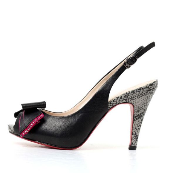 黑色羊皮鞋面,加上蛇纹后跟,鱼嘴加上花朵设计,足见设计师敏锐的时尚触觉,气质美女们怎会轻易放过?