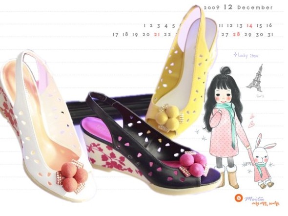 可爱MM的最爱,坡跟,减轻了逛街的疲劳,心形小孔,鱼嘴设计加上三颗花朵的完美搭配,衬托MM的可爱迷人~~