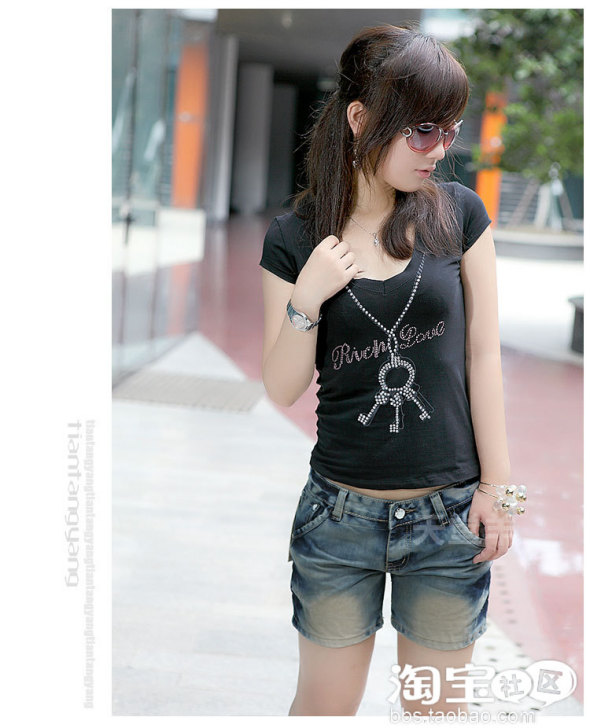 但是在夏天穿一件黑色的紧身t+一条牛仔色的热裤