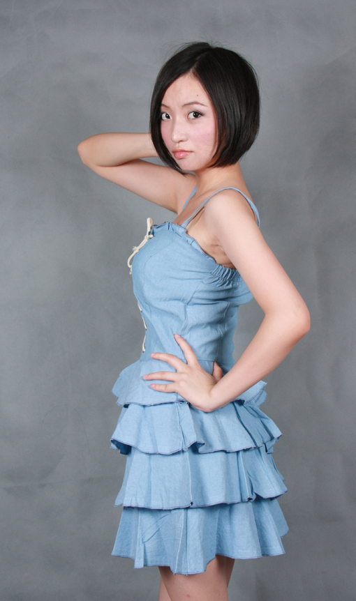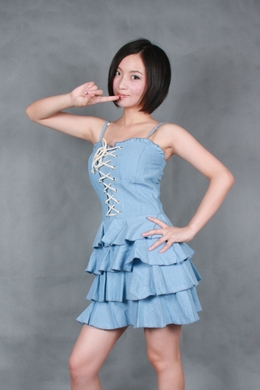 个人认为这款公主裙比较适合娇小的MM们穿,像我这种三无人员——无胸、无腰、无身高,穿上它也能自我感觉良好。这款裙子完全可以扬长避短,首先在胸部有垫胸,太平公主们可以穿上内衣再穿这款裙子(本人就是这样做的),同样也有波涛汹涌的效果哦!