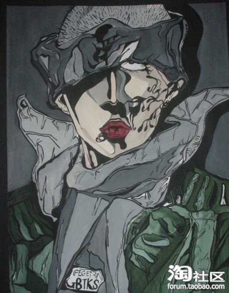 这张是一个人物,是用炭笔加上刀刻画出来的,。比较有意境吧。