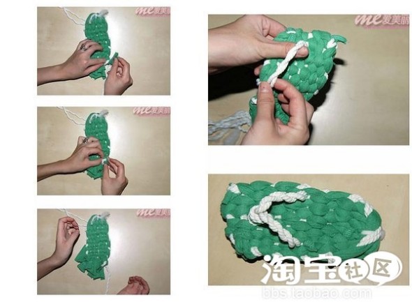 第三步:用粗绳子(或者长布条)用上下编织的方法来回上下编~~