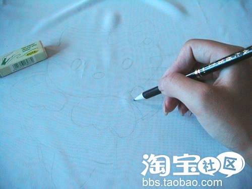 步骤:把小木民和他gf斯诺尔克小妞画在裤腿布上,然后剪下