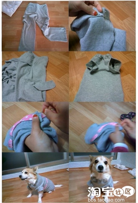 用旧运动裤给狗狗做保暖冬衣