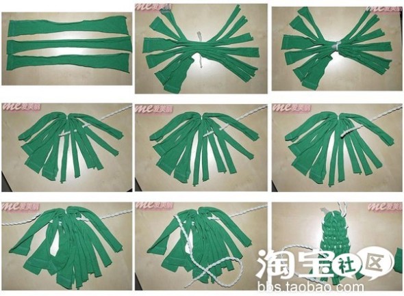 第二步:用绳子将这几条布从中间系起来~~~一定要系紧