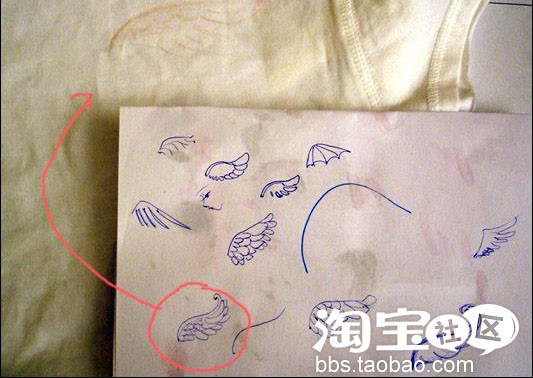 想画个翅膀,于是在纸上画了n种翅膀。终于创造出一个自认为最梦幻的,用彩色铅笔开画。
