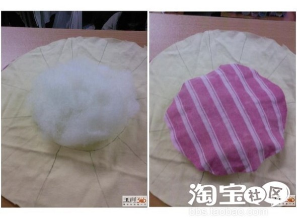 4.然后在每两道太阳光芒中间得口里塞上棉花,塞满后将边缘缝好,抽紧再打结。OK。完工~