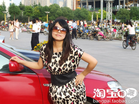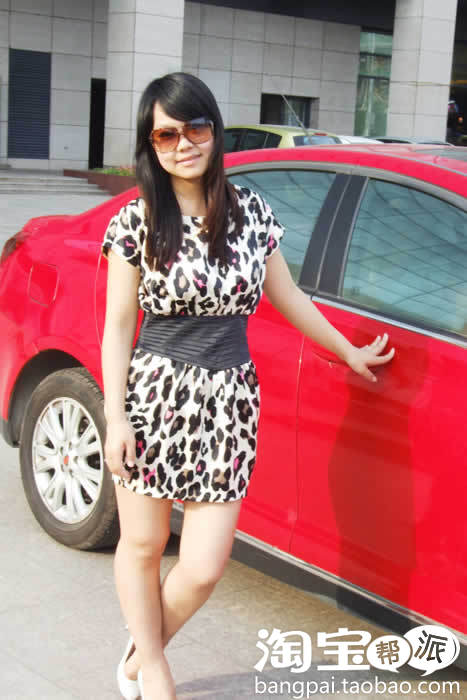 豹纹连衣裙,赞,中间黑色部分很显腰哦,腰上肉肉的亲注意啦!