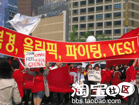 偶正在国旗底下呢 ~~看不见那~~韩国首尔北京奥运会传递火炬~~