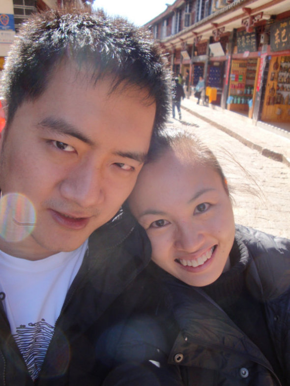 拍摄时间:2009年12月,拍摄地点:阳光无处不在的丽江街上~跟老公玩非主流大头自拍,结果把老公拍丑了~