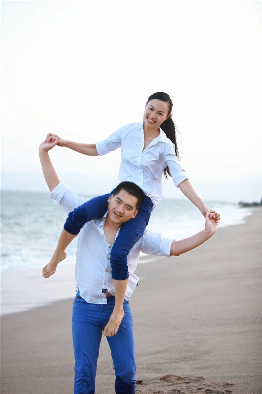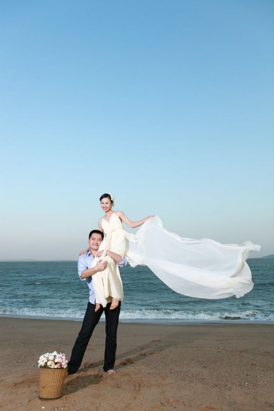 拍摄时间:2009年的10月,拍摄地点:迷人的厦门环岛路海滩~~PS.在照片以外的地方,至少有50对新人在拍婚纱照……没办法,谁让是黄金周。很多女孩都羡慕地看着相公把我高高地举起,把他养壮就是用来抱我的,哈哈~此时,相公已经185斤……