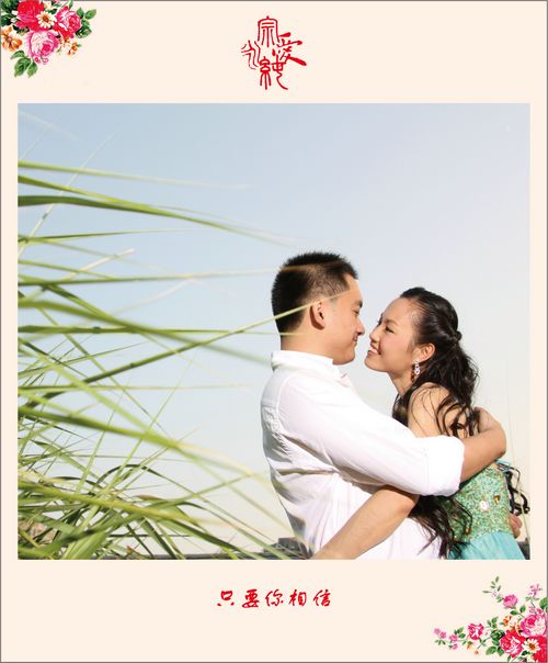 大家可以看到,我真的不算漂亮啦,最多是五官端正,也不知道那时撞上我相公哪个神经细胞,也许就是传说中的名命中注定。相公可是帅着呢,所以我一直都不大自信。
