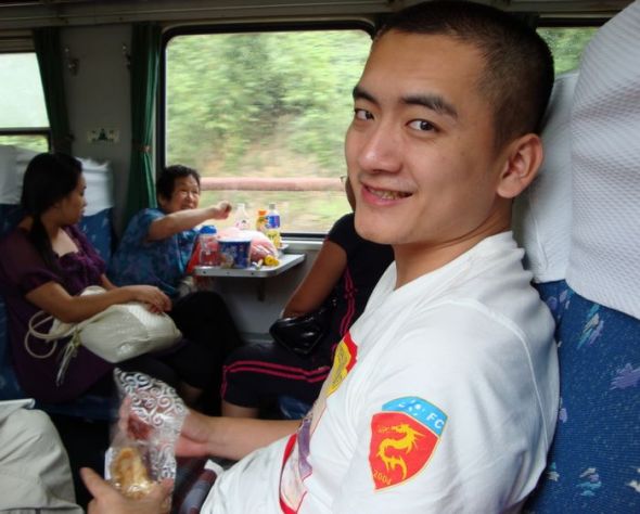 拍摄时间:2008年9月,拍摄地点:在去福建大金湖的火车上。相公一年半前苗条的时候,身高183,体重标准155斤,帅得上街我都巴不得把他裹成粽子,太有回头率了~幸好,现在被我养发福啦!