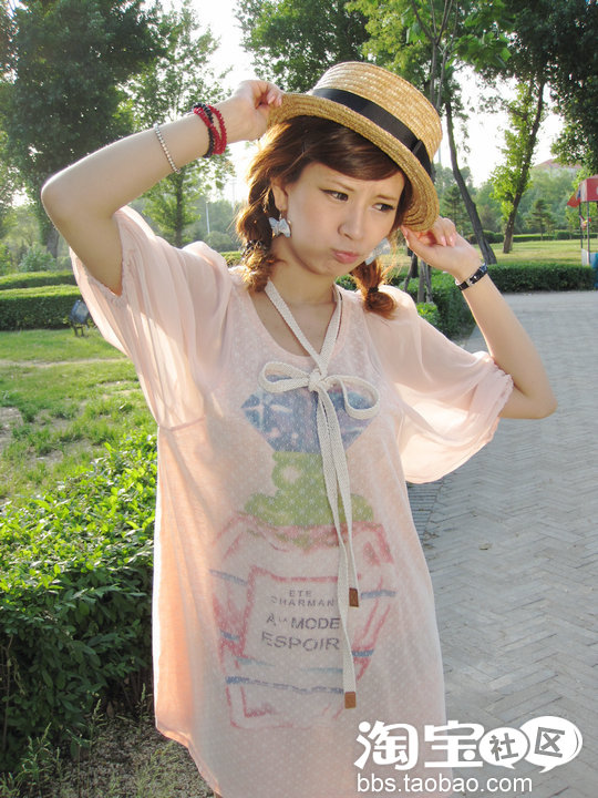 搭配流行的评定草帽~很甜美很夏天~