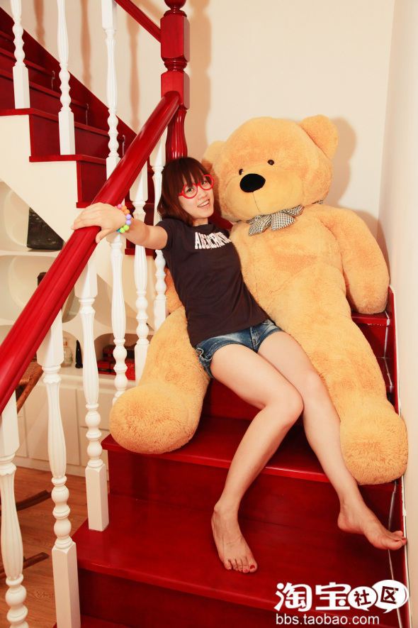 小妞在家里的楼梯上和败来的大熊!超喜欢这个小熊地哦~