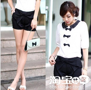 (三)搭配:波点雪纺衬衫+大蝴蝶结短裤
