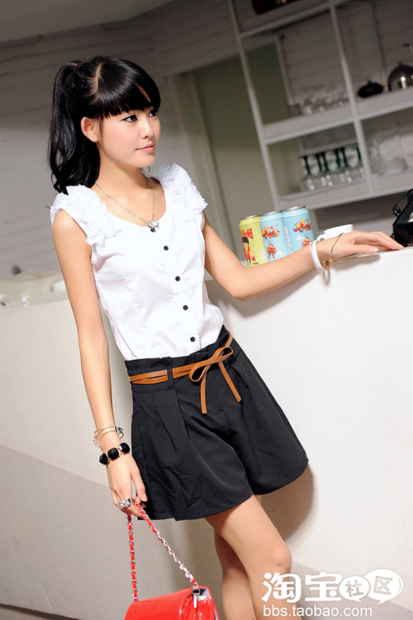 (二)搭配:无袖雪纺衬衫+米色短裤