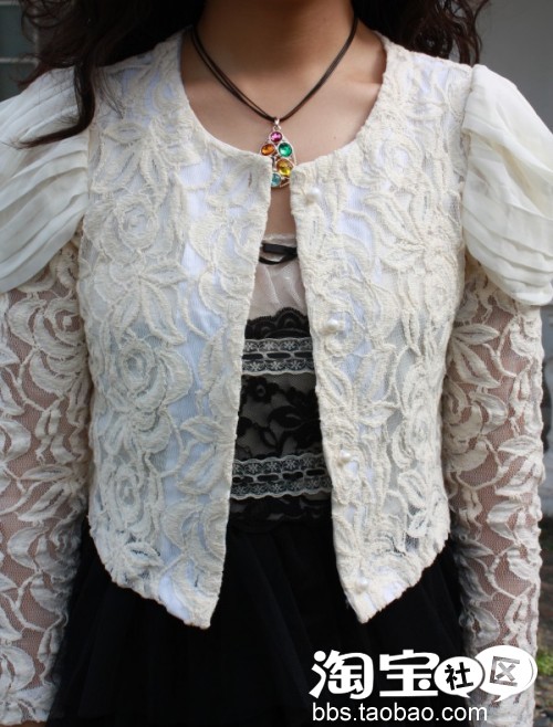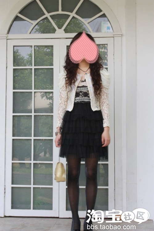 第三条是今年流行的蕾丝、雪纺搭。偶里面穿的是一件高腰的蕾丝蓬蓬裙,外面穿的一件蕾丝小外套。。。
