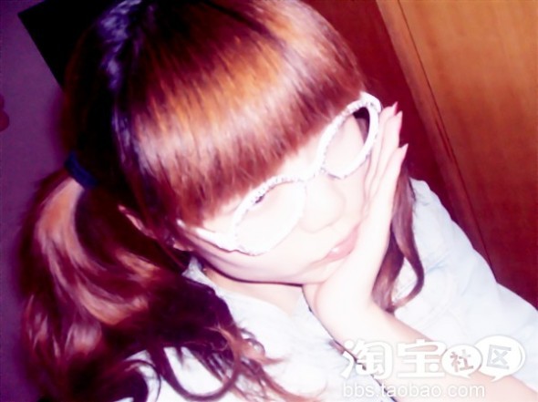 看我脚上的蝴蝶结阿 好好玩 原谅我戴上了傻呼呼的圆框镜