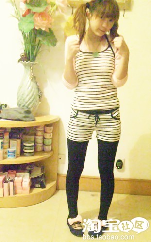 最后再搭配件连体条纹夏装哦~ 感觉穿上应该还很PP
