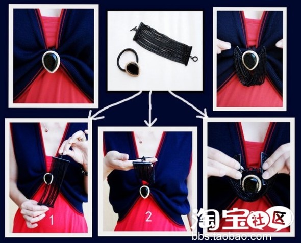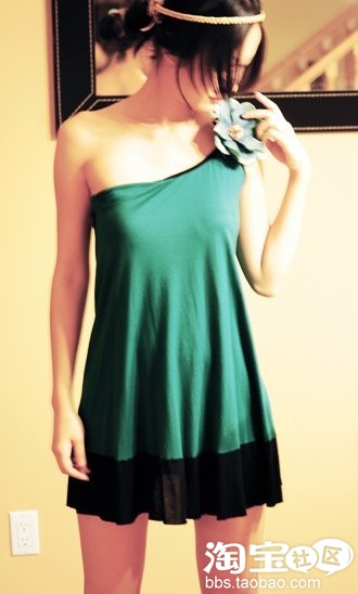 那么,我们就来学学现在大热的单肩吧。把一边吊带翻进去(用针线稍微固定一下就更好啦),另外一边根据个人骨架,打结调整吊带的长短。别一朵装饰物,就更有PARTY感觉啦*^-^*