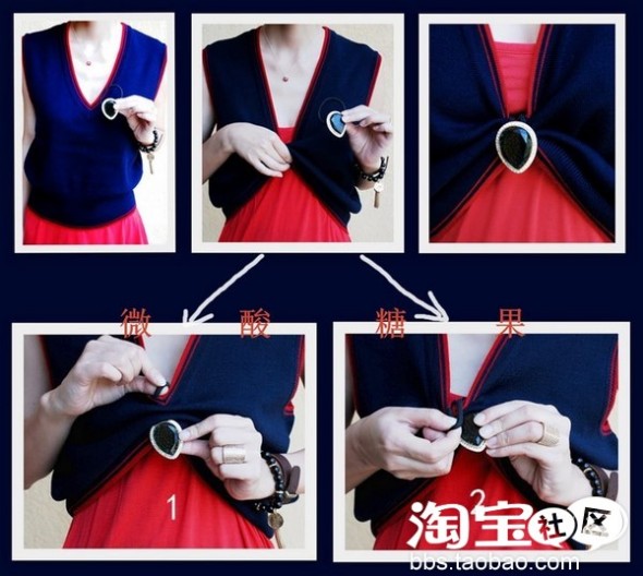 这样穿的时候,里面要有漂亮抹胸打底哦,要不手一抬高,毁了!