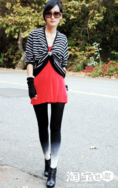 蕾丝袜子的搭配,衣服上宽松一些,贯彻一下半糖主义,女人(女性元素)和男人(中性元素),各占一点点,这样就不会太腻~~