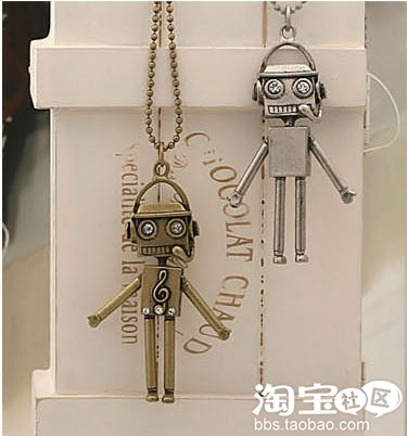 首先分享的是复古音符镶钻古铜色 可活动机器人毛衣链 女生佩戴个性可爱,男生佩戴尽显阳刚之气哦