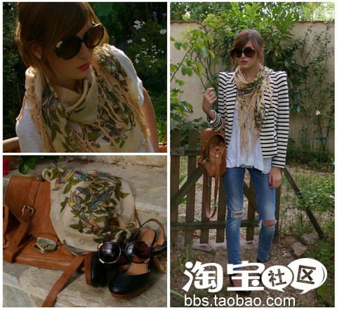 大大的雷朋眼睛,凌乱的头发,很有造型的牛仔裤。复古!